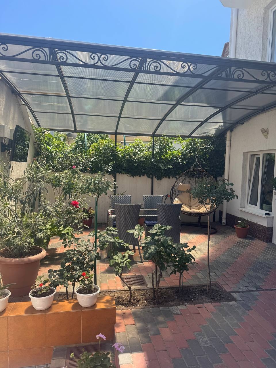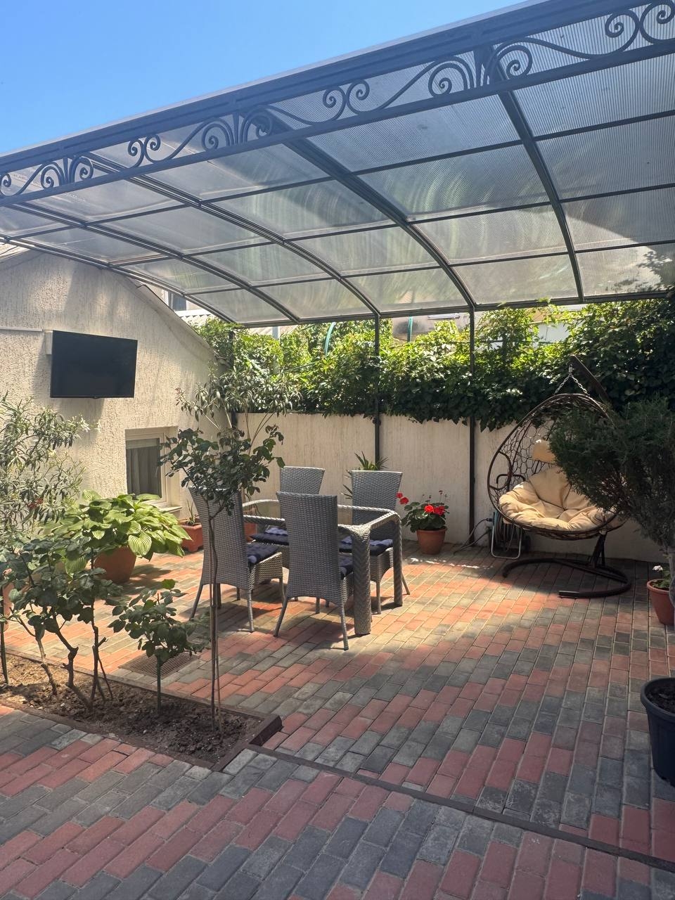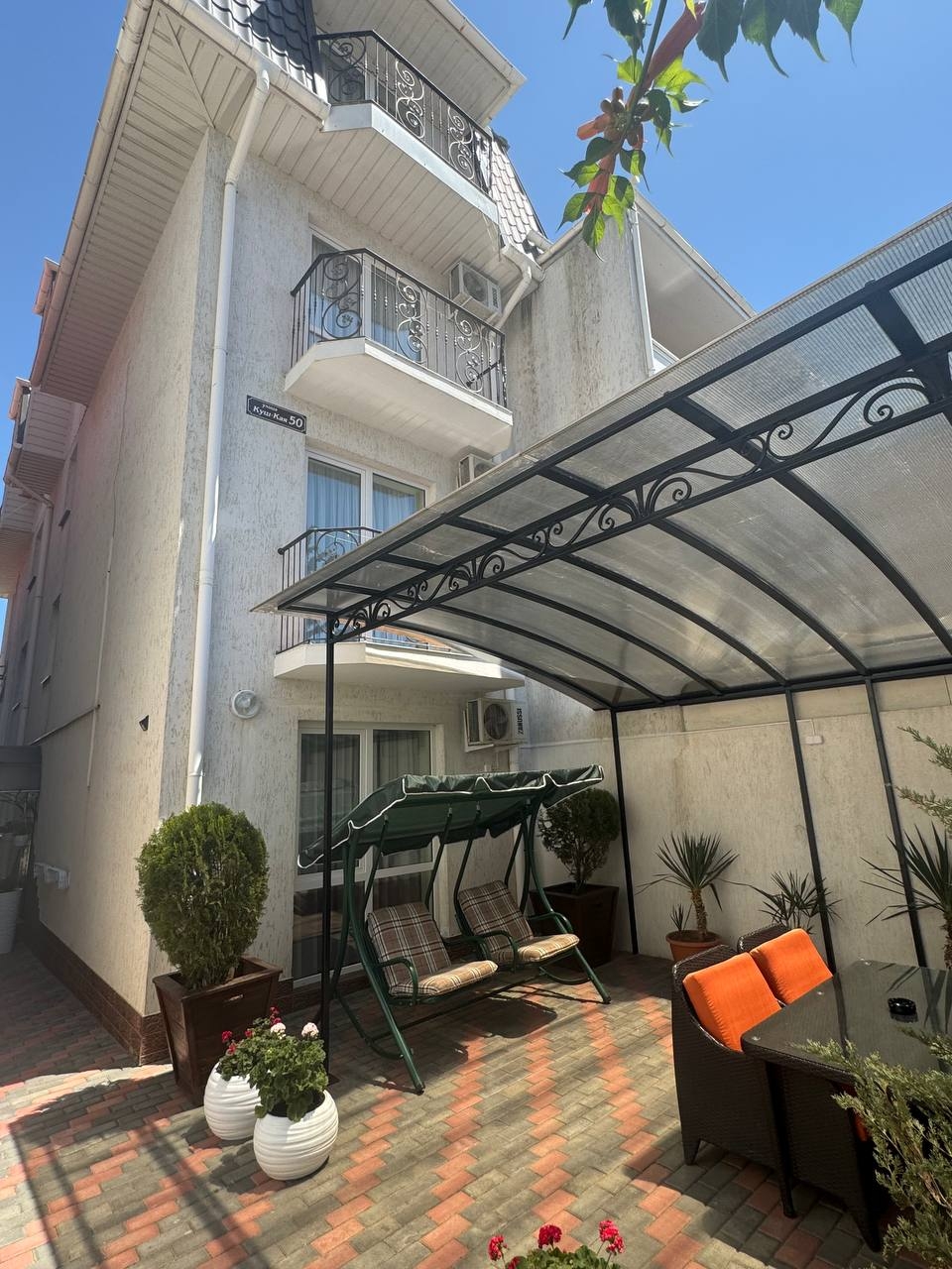 Вся территория гостевого дома «Колибри» — это небольшой уютный дворик, с множеством растений и цветов. Во дворе расположены летние беседки с плетёной мебелью, качелями и детским уголком.