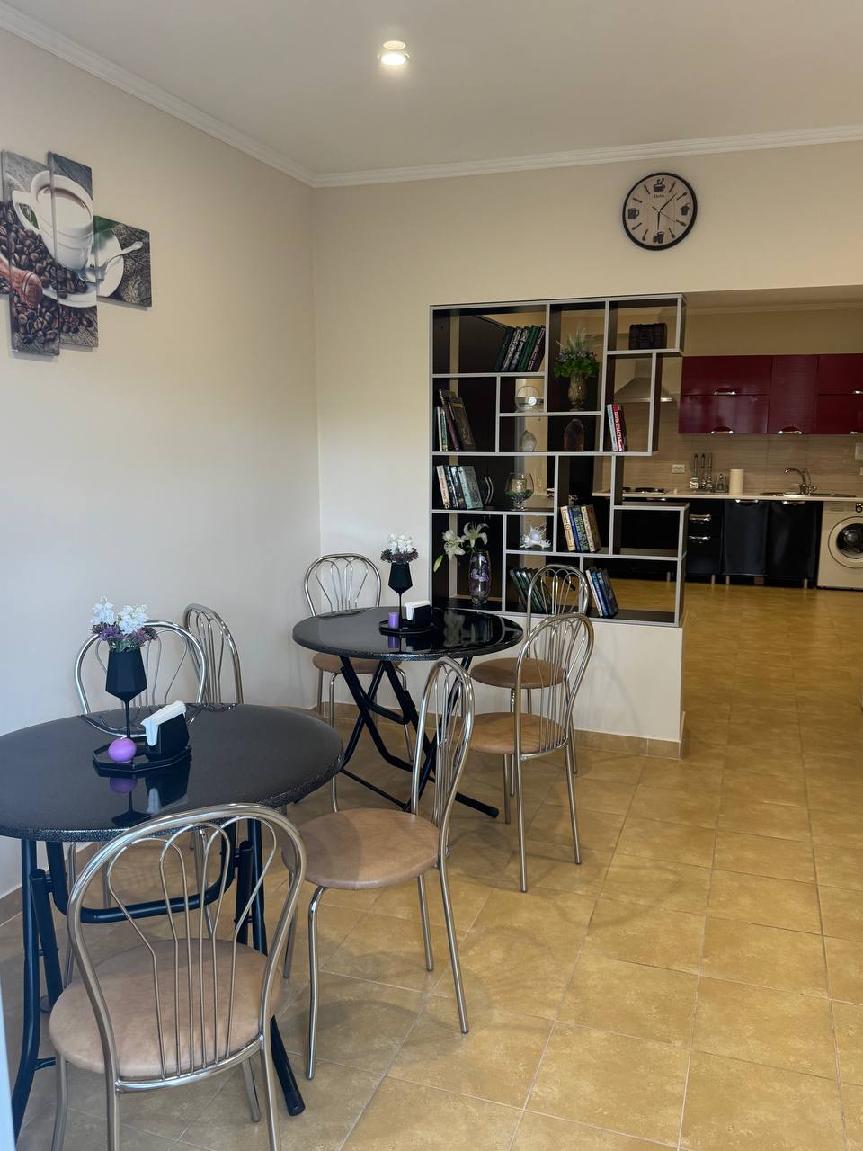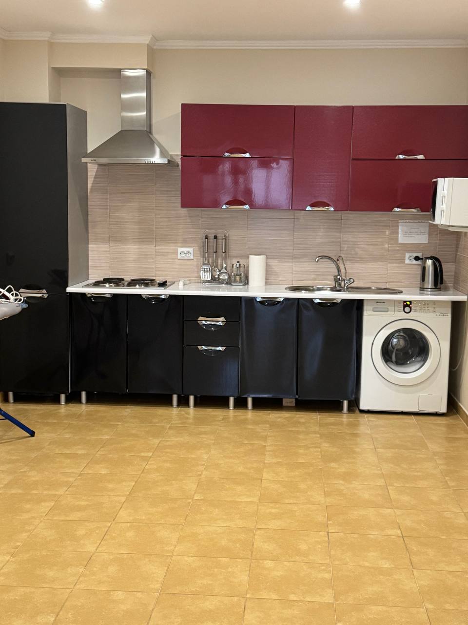 Идеальный бонус к отдыху — всего в паре шагов от уютной зоны с креслами и столом находится полноценная общая кухня. Это невероятно удобно в Крыму: можно быстро приготовить свежие овощи с рынка, сварить утренний кофе и вынести его на террасу, или разогреть пирожки к чаю после моря. Не нужно ютиться в номере — готовь, общайся и наслаждайся отдыхом без лишних хлопот!